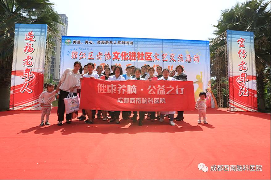2017年4月19日,成都西南脑科医院的医务人员来到锦江区,与锦江区老协、盐市口街道老协、三圣街道老协和督院街道老协共同开办了以“健康养脑,公益之行”为主题的文化进社区文艺交流活动。