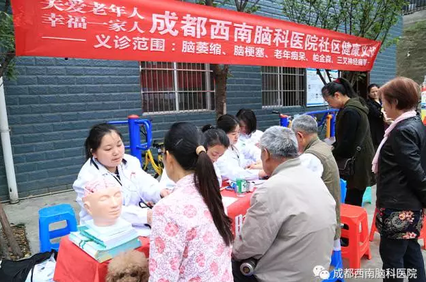 表演结束以后,成都西南脑科医院的医务人员还为社区的老人们进行了老年病的知识普及和义诊。以“认识脑科学”为主题,为大家传播老年痴呆、帕金森、脑萎缩等老年病的相关知识。