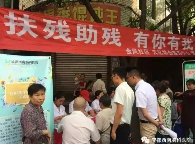 在“5.21”全国助残日即将来临之际,金凤社区联合天亿综合服务中心于2017年5月19日上午,邀请“向阳花开公益行动”义诊团成都西南脑科医院的医务工作者,在辖区金凤街开展脑瘫儿关爱、帕金森、老年痴呆前期诊断等助残活动。此次活动旨在呼吁社会各界关爱残疾人尤其是脑瘫儿群体,给予他们包容、爱与帮助;呼吁关注脑健康、认识脑科学,掌握帕金森、老年痴呆等常见脑科疾病的早期症状,做到早预防、早发现、早控制。