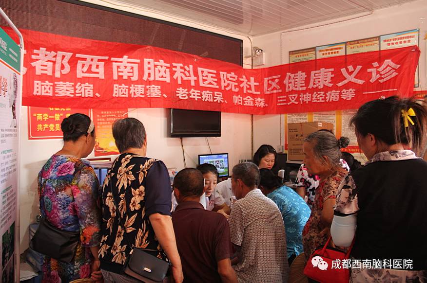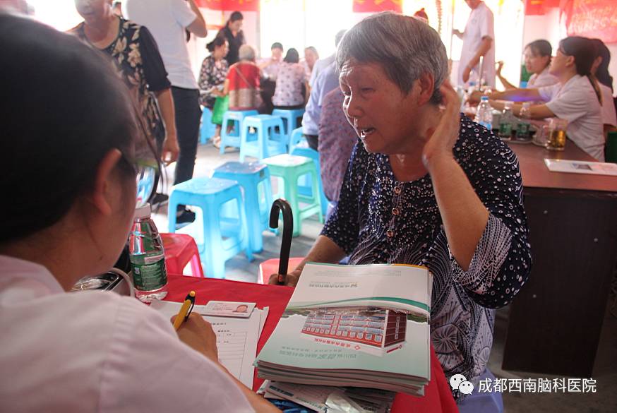 成都西南脑科医院的医护人员已经先后去到多个社区进行了公益义诊活动,这次义诊主要目的是在“医疗扶贫”同时,为观音村的老人们进行了老年病的知识普及和义诊,提高他们的健康意识,为大家传播老年痴呆、帕金森、脑萎缩等老年病的相关知识。让更多的老年人加强脑部疾病的预防知识,意识到这种疾病的严重性。