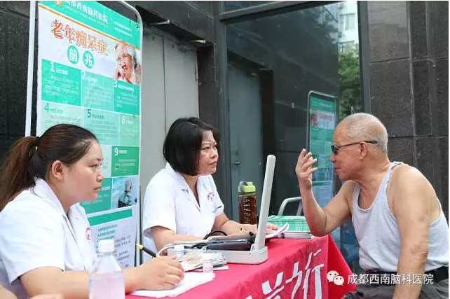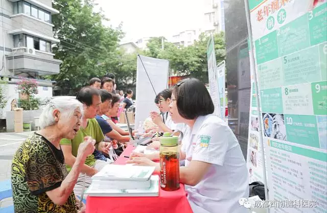 成都西南脑科医院的医护人员已经先后去到多个社区进行了公益义诊活动,这次义诊主要目的是在“文化进社区”同时,为社区的老人们进行了老年病的知识普及和义诊,提高他们的健康意识,为大家传播老年痴呆、帕金森、脑萎缩等老年病的相关知识。让更多的老年人加强脑部疾病的预防知识,意识到这种疾病的严重性。