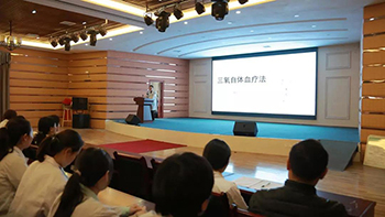 该讲座围绕“五大医疗功能”、“什么是医用臭氧自体疗法”、“医用臭氧的临床依据”、“医用臭氧的临床治疗作用”、“臭氧自血疗法注意事项”等问题展开,主讲人程俊主任还将三氧自体血疗法的作用机理、适应症、禁忌症等问题一一阐述清楚,让在场医护人员熟知该技术的理论知识,熟知操作流程,以便于实际操作时迅速掌握。