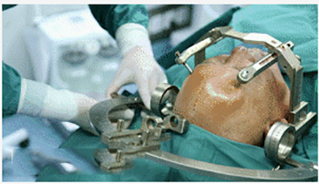 用影像学定位(CT、MRI)和立体定向仪引导来构建三维立体的脑部结构图,应用美国耶鲁大学的机器人动力机械臂,通过靶点定位后,动力机械臂能以0.1mm的重复精度保持稳定的轨迹,误差低于0.1毫米,确保手术准确无误。