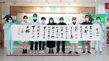 这次来到成都西南脑科医院,找院内看过病情后,对西南脑科治疗帕金森的效果表示肯定和赞许。随后,身为国学大家的他为我们送上了他手书的4米长墨宝《定风波》。