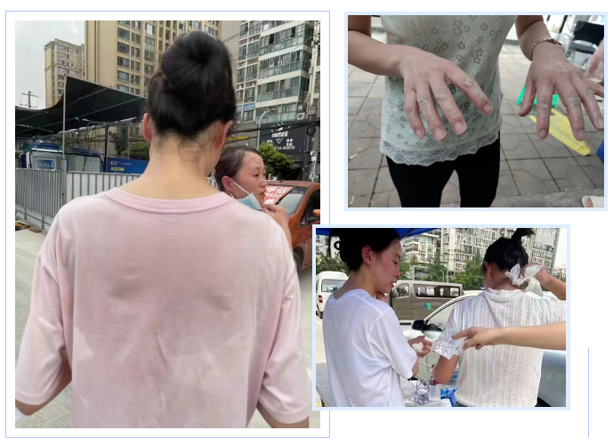 据相关媒体披露数据显示,防护服下的体感温度或可达到64℃!白天还是高温“烤”验,匆匆吃两口盒饭就到了晚上,倾盆大雨说来就来,“大白”们毅然在雨中坚守!