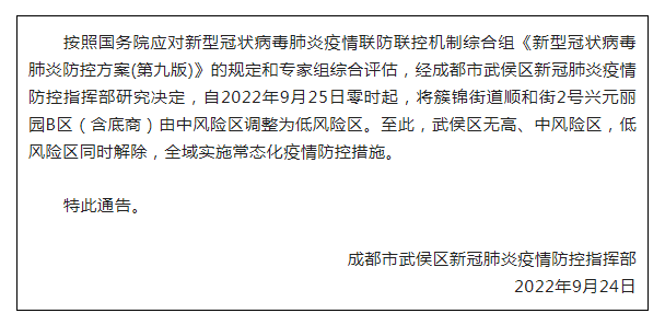 9月24日,成都武侯区发布最新通告: