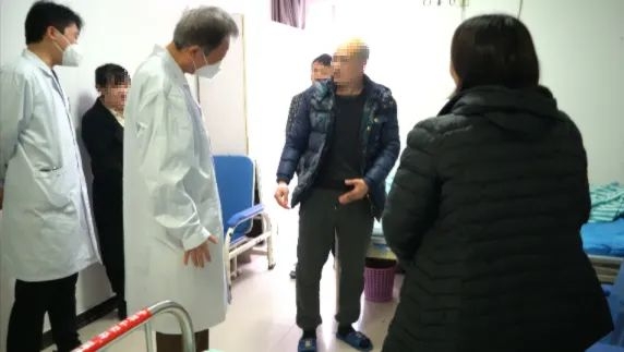 术后赵主任和韩医生查看患者病情