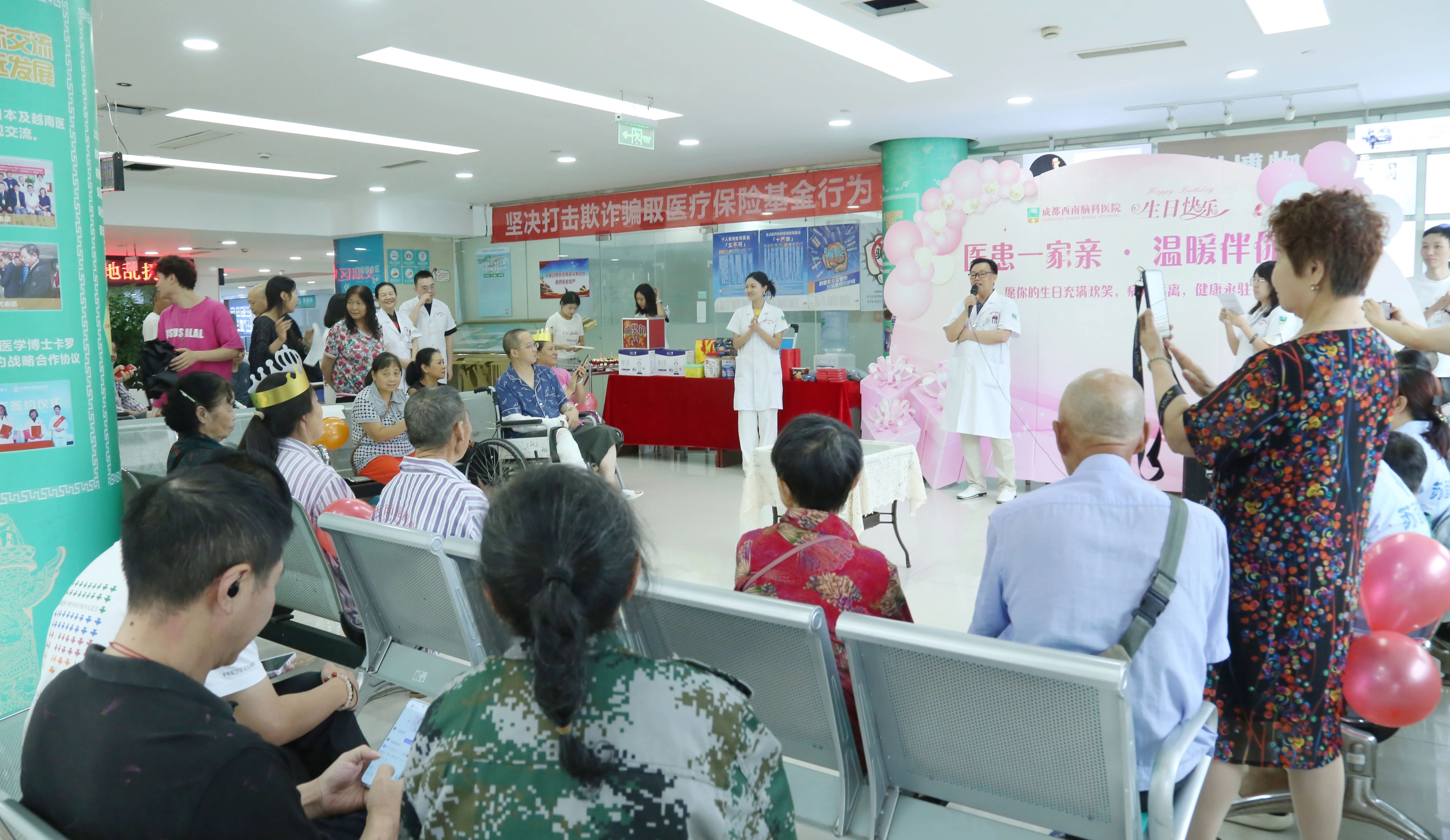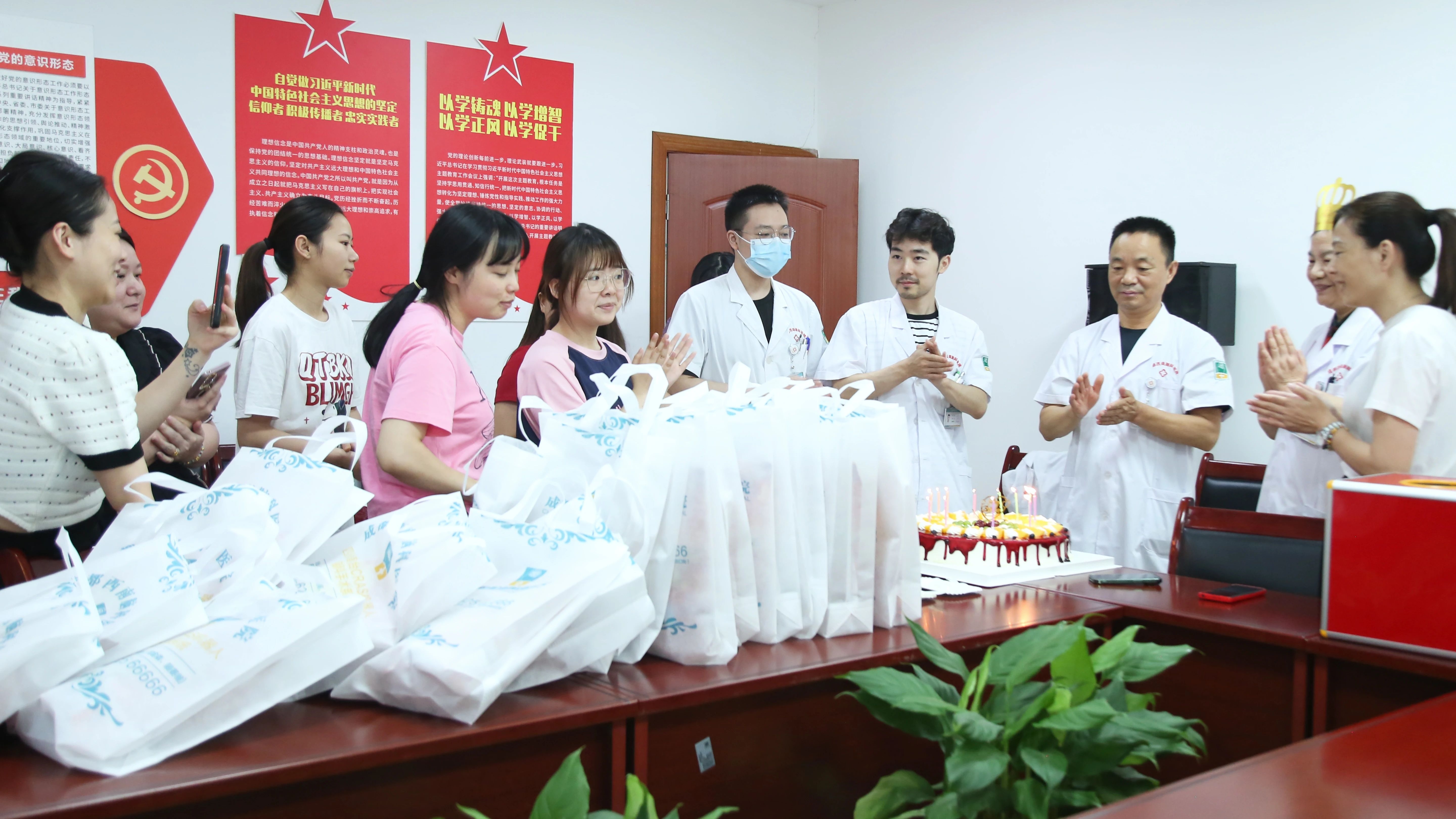 下午4点,西南脑科员工生日会在医院3楼会议室举办。现场精心准备了生日蛋糕和礼物,生日快乐的歌声和大家的欢声笑语回荡在整个会议室。