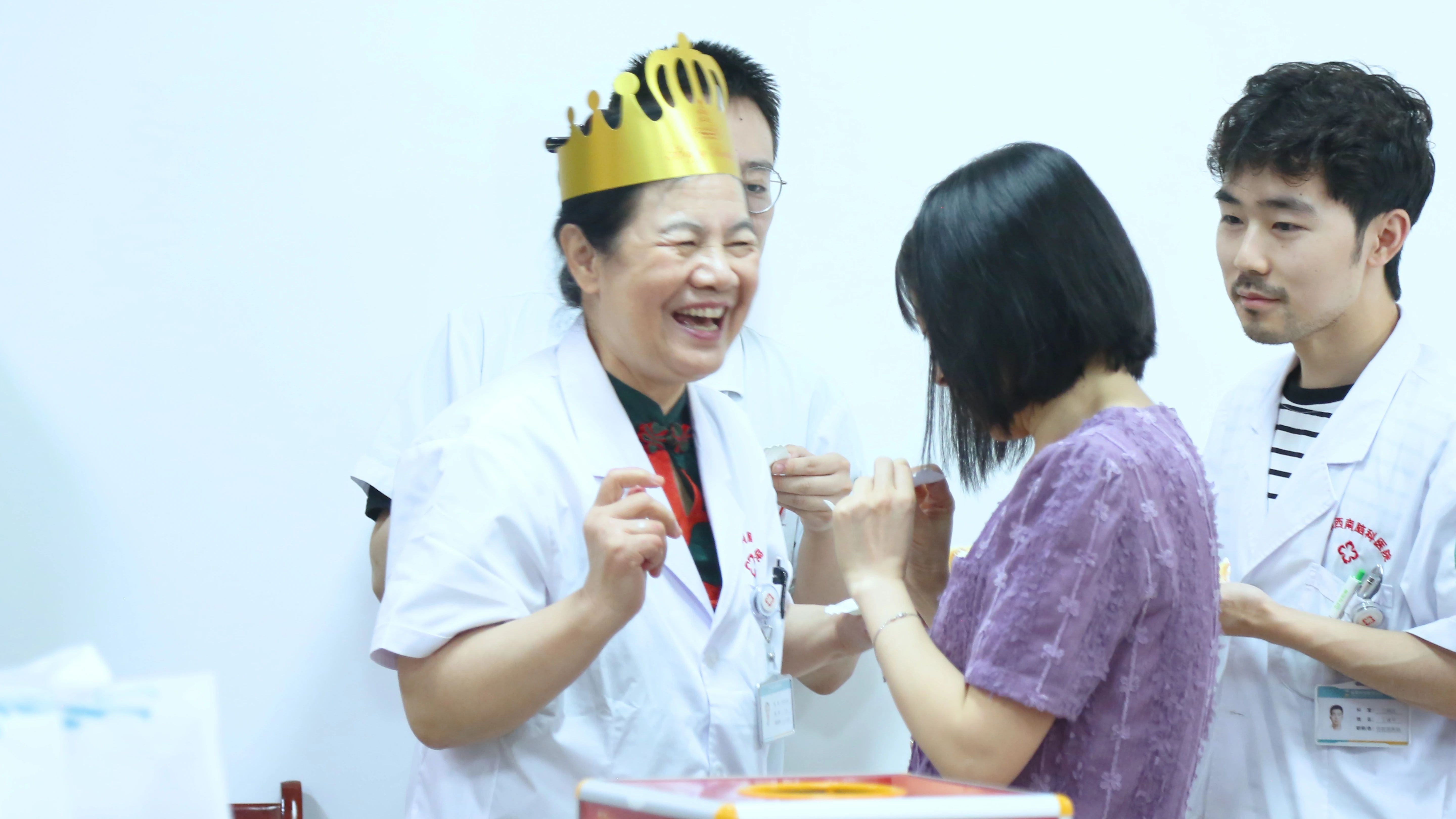 待所有寿星戴上生日帽,胥院长和门诊左剑主任纷纷上台,向本月过生日的寿星们送上了真挚的慰问和生日祝福。